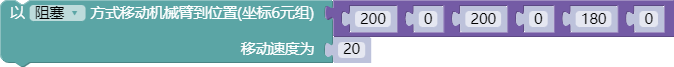 - 参数3:表示机械臂移动速度。参数范围为0~100。数值越大表示速度越快。
