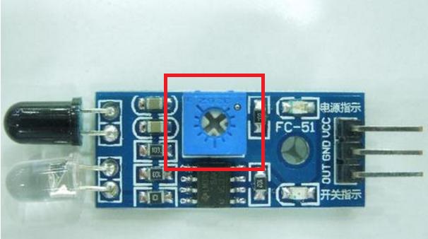 - 可以通过调节传感器上的旋钮来调节检测的灵敏度。如下图