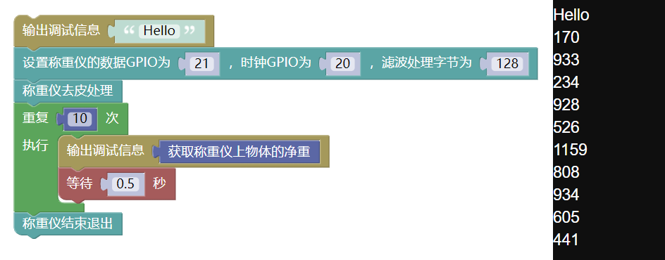 - 功能简介:设置称重仪数据信号和时钟信号端口;在过去称重前需要先调用该积木块进行初始化。