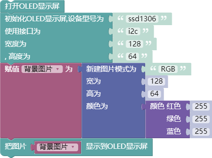 - 功能简介:初始化OLED显示屏,调用显示图片和文字前先调用该积木块。