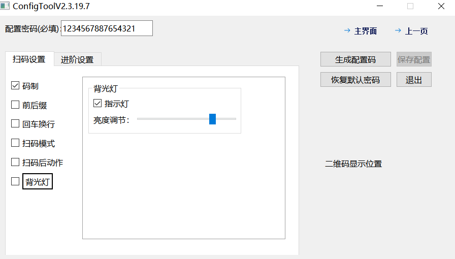 如下图,设置完成后,点击右上方的生成配置码按钮,可以生成一个二维码。