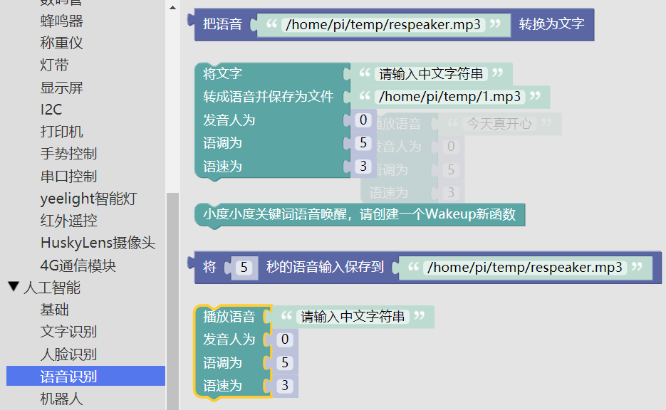 1、 音箱调用程序有两个,一个是在人工智能模块的基础中,如下图所示