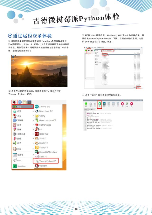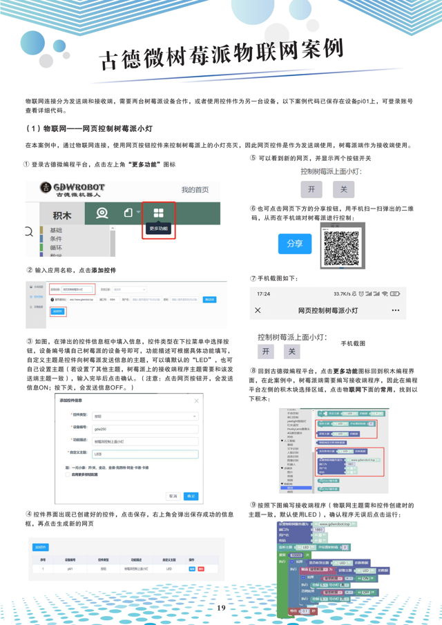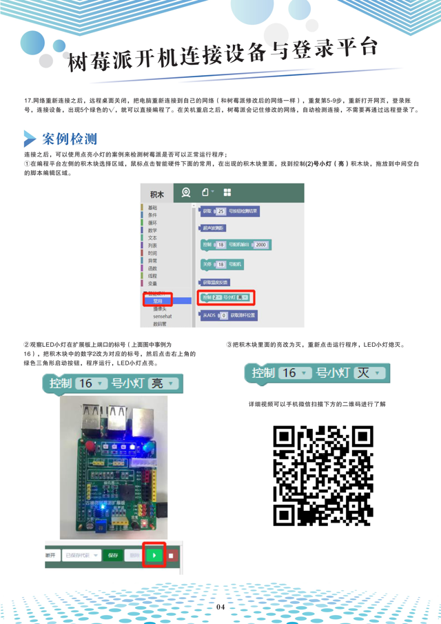 浙江中小学信息课教具使用说明书,一共分为6个部分,分别是:开机连接设备和登陆平台、使用说明、物联网案例、人工智能案例、Python编程体验、常见问题汇总。